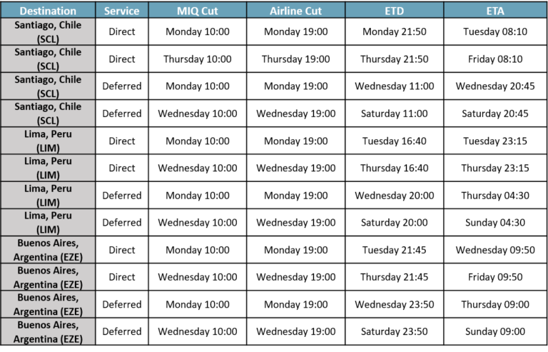 上面的是从休斯敦到拉丁美洲的航空货运合并时间表